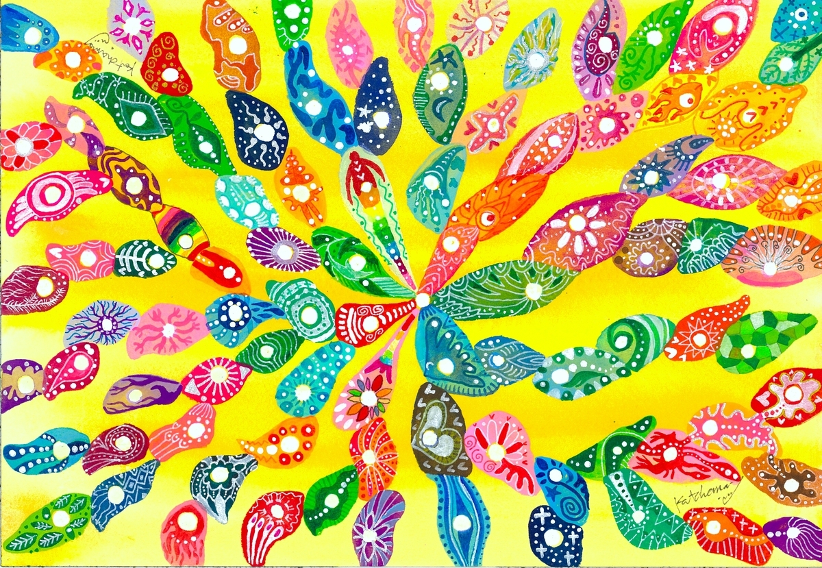 そして今年の作品は『自分の内なる声を聴き、内なるエネルギーを広げ、自分や関わる方々、そして社会と響き合いますように❣️』と祈りを込めて、描かせていただきました。